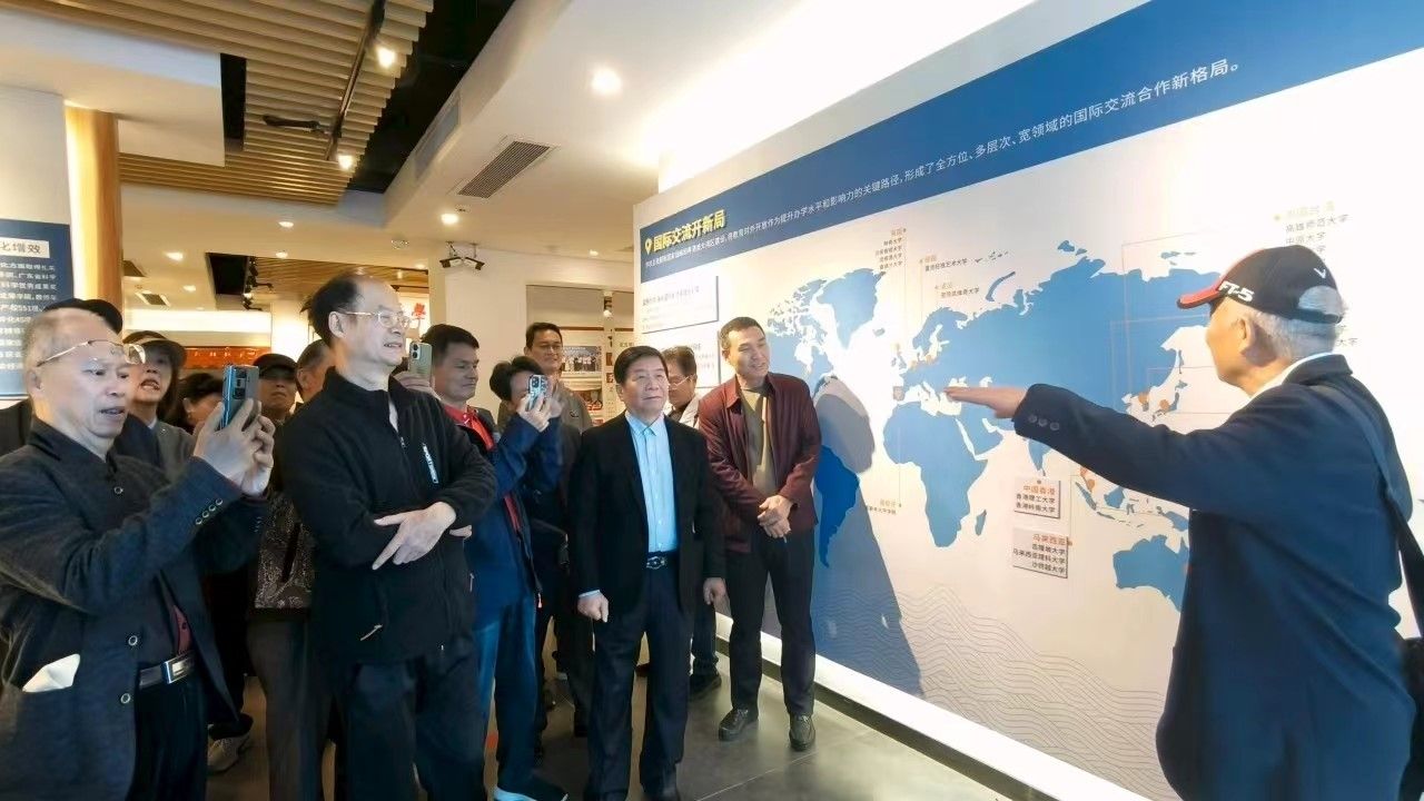 校友们有序参观馆内丰富的史料展品,透过一张张珍贵的历史照片、一段段详实的文字记载、一件件具有时代印记的实物展品,重温往昔求学时光,深情缅怀恩师教诲。校史馆内丰富多样的展陈内容,生动展现了学校在不同时期的办学特色与精神传承,深深触动了校友们的心弦,引发了强烈的情感共鸣。校友们对母校取得的跨越式发展给予高度评价,自豪与振奋之情溢于言表。