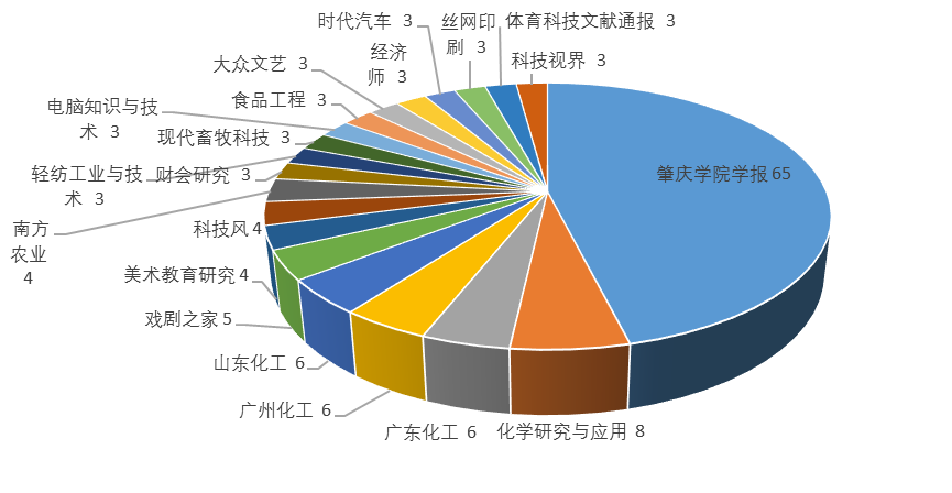 《肇庆学院学报》(65篇),占总文献量的16.25%(65/400),远超其他期刊。
