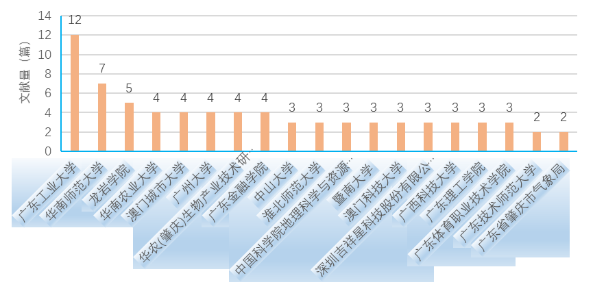 肇庆学院(17篇)为文献量最高的主要主题,显示学院自身或地方院校是核心研究对象。